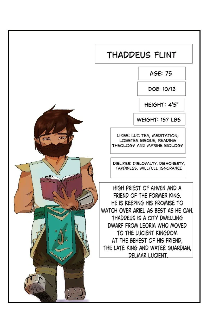 "Artel, the current water guardian, doesn’t take her role seriously and lives day by day without care. A precious ancient artifact said to belong to Ahven, the god of water and health, is taken under her watch. It is up to her and those she meets along the way to retrieve the stolen artifact, protect the remaining artifacts, and help maintain peace in the world of Fahiri."
